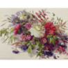 Collection d'Art, kit diamant Peonies with grapes (art. CADE7157). Dimensions: 48 x 38 cm. Kit comprenant la toile adhésive, les strass carrés emballés dans des sachets individuels et numérotés aux références des coloris de DMC, une pince, un stylo et sa colle, 2 réceptables et les explications.Toute la surface du tableau est à recouvrir de strass....