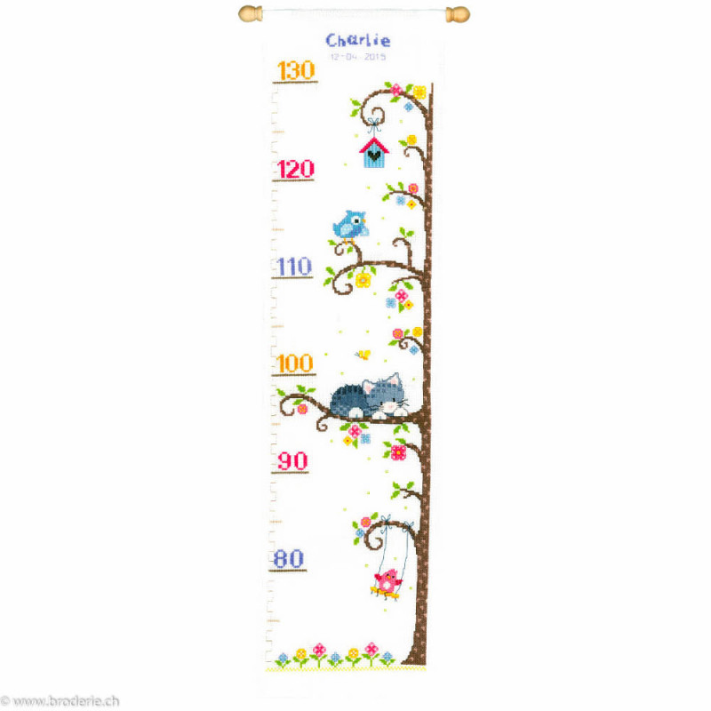 L'article 'Vervaco, kit Toise Chaton dans arbre (PN0154532)' fait partie de notre assortiment depuis le 12 avril 2018. Vervaco est un fabricant belge de kits au point de croix, au point noué, aux points comptés, et propose aussi de sympathiques kits pour les enfants. Ils sont de réalisation relativement faciles : pas de quart de point, dessins et diagrammes très clairs, beaucoup de thèmes abordés (paysage , fleurs , mariage,et particulièrement kits de naissances, toises et Disney).