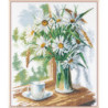 Andriana, kit Tender Bouquet (art. SANN-23). Dimensions: 26 x 22 cm. Trame: Aïda 6.4 pts. Trame blanche.