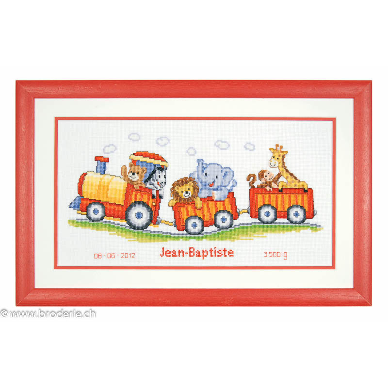 L'article 'Vervaco, kit naissance Train (PN0145025)' fait partie de notre assortiment depuis le 27 mars 2013. Vervaco est un fabricant belge de kits au point de croix, au point noué, aux points comptés, et propose aussi de sympathiques kits pour les enfants. Ils sont de réalisation relativement faciles : pas de quart de point, dessins et diagrammes très clairs, beaucoup de thèmes abordés (paysage , fleurs , mariage,et particulièrement kits de naissances, toises et Disney).