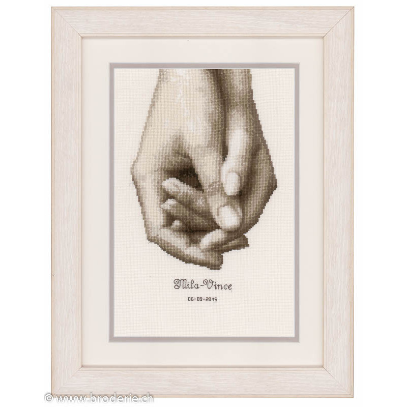 L'article 'Vervaco, kit Mariage mains enlacées (PN0149249)' fait partie de notre assortiment depuis le 28 octobre 2014. Vervaco est un fabricant belge de kits au point de croix, au point noué, aux points comptés, et propose aussi de sympathiques kits pour les enfants. Ils sont de réalisation relativement faciles : pas de quart de point, dessins et diagrammes très clairs, beaucoup de thèmes abordés (paysage , fleurs , mariage,et particulièrement kits de naissances, toises et Disney).
