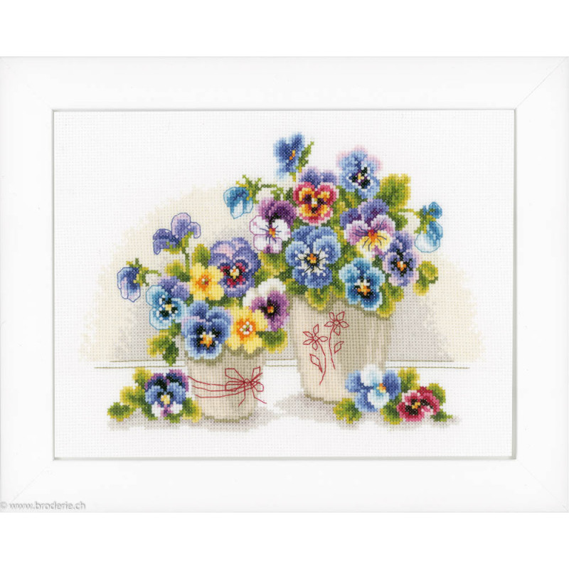 L'article 'Vervaco, kit Pots de pensées (PN0146578)' fait partie de notre assortiment depuis le 30 octobre 2014. Vervaco est un fabricant belge de kits au point de croix, au point noué, aux points comptés, et propose aussi de sympathiques kits pour les enfants. Ils sont de réalisation relativement faciles : pas de quart de point, dessins et diagrammes très clairs, beaucoup de thèmes abordés (paysage , fleurs , mariage,et particulièrement kits de naissances, toises et Disney).