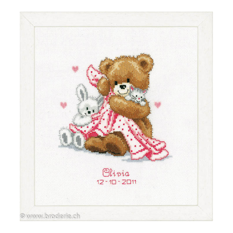 L'article 'Vervaco, kit naissance Olivia Mateo (PN0011901)' fait partie de notre assortiment depuis le 30 octobre 2014. Vervaco est un fabricant belge de kits au point de croix, au point noué, aux points comptés, et propose aussi de sympathiques kits pour les enfants. Ils sont de réalisation relativement faciles : pas de quart de point, dessins et diagrammes très clairs, beaucoup de thèmes abordés (paysage , fleurs , mariage,et particulièrement kits de naissances, toises et Disney).
