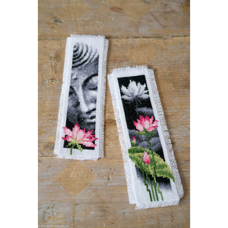 L'article 'Vervaco, kit signets nénuphars et Boudha (PN0155652)' fait partie de notre assortiment depuis le 6 avril 2017. Vervaco est un fabricant belge de kits au point de croix, au point noué, aux points comptés, et propose aussi de sympathiques kits pour les enfants. Ils sont de réalisation relativement faciles : pas de quart de point, dessins et diagrammes très clairs, beaucoup de thèmes abordés (paysage , fleurs , mariage,et particulièrement kits de naissances, toises et Disney).