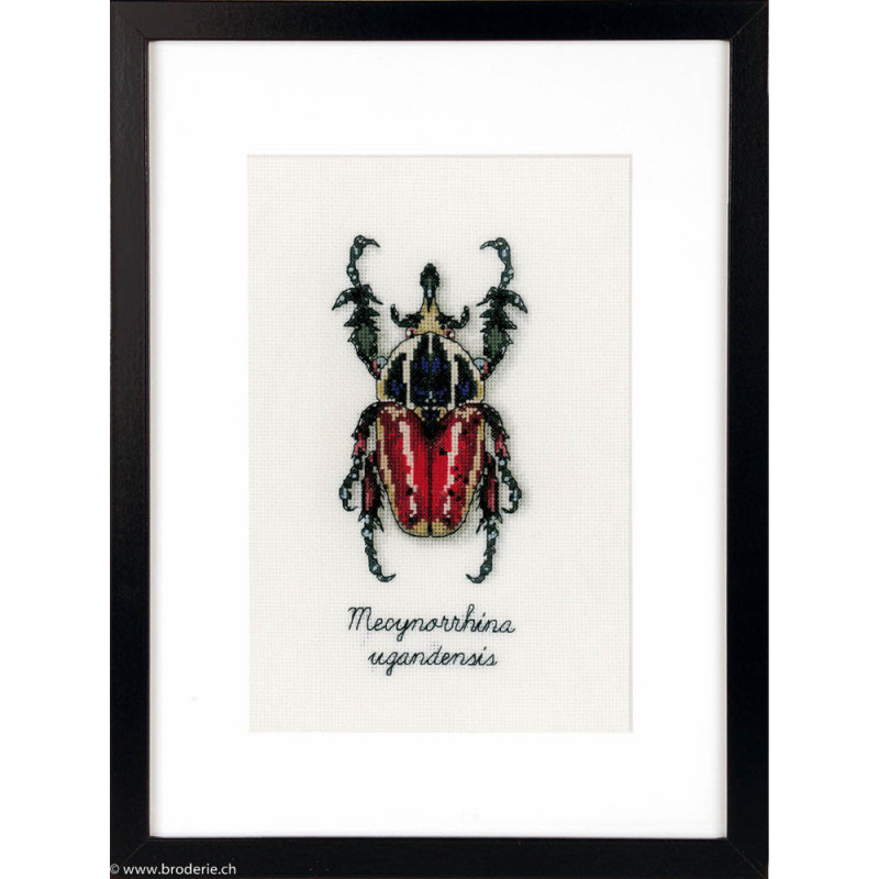L'article 'Vervaco, kit Coléoptère Mesynorrhina (PN0165074)' fait partie de notre assortiment depuis le 6 avril 2017. Vervaco est un fabricant belge de kits au point de croix, au point noué, aux points comptés, et propose aussi de sympathiques kits pour les enfants. Ils sont de réalisation relativement faciles : pas de quart de point, dessins et diagrammes très clairs, beaucoup de thèmes abordés (paysage , fleurs , mariage,et particulièrement kits de naissances, toises et Disney).