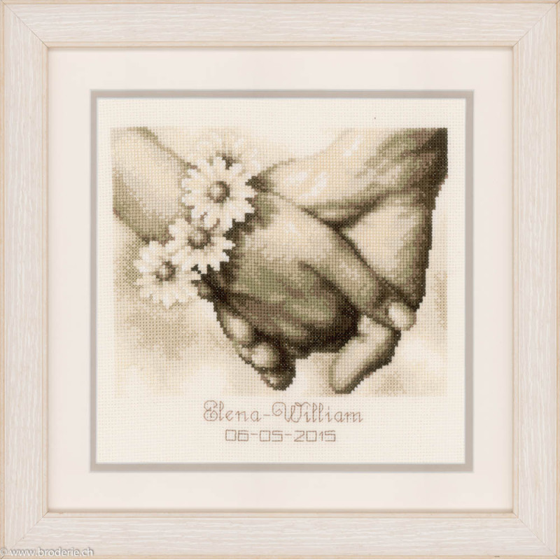 L'article 'Vervaco, kit Jeunes mariés (PN0154752)' fait partie de notre assortiment depuis le 6 avril 2017. Vervaco est un fabricant belge de kits au point de croix, au point noué, aux points comptés, et propose aussi de sympathiques kits pour les enfants. Ils sont de réalisation relativement faciles : pas de quart de point, dessins et diagrammes très clairs, beaucoup de thèmes abordés (paysage , fleurs , mariage,et particulièrement kits de naissances, toises et Disney).