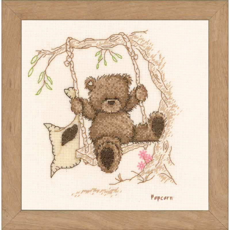 L'article 'Vervaco, kit Popcorn sur la balançoise (PN0011188)' fait partie de notre assortiment depuis le 6 avril 2017. Vervaco est un fabricant belge de kits au point de croix, au point noué, aux points comptés, et propose aussi de sympathiques kits pour les enfants. Ils sont de réalisation relativement faciles : pas de quart de point, dessins et diagrammes très clairs, beaucoup de thèmes abordés (paysage , fleurs , mariage,et particulièrement kits de naissances, toises et Disney).