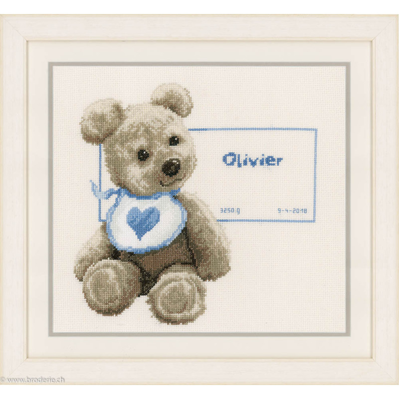 L'article 'Vervaco, kit naissance ourson (PN0163514)' fait partie de notre assortiment depuis le 27 novembre 2017. Vervaco est un fabricant belge de kits au point de croix, au point noué, aux points comptés, et propose aussi de sympathiques kits pour les enfants. Ils sont de réalisation relativement faciles : pas de quart de point, dessins et diagrammes très clairs, beaucoup de thèmes abordés (paysage , fleurs , mariage,et particulièrement kits de naissances, toises et Disney).