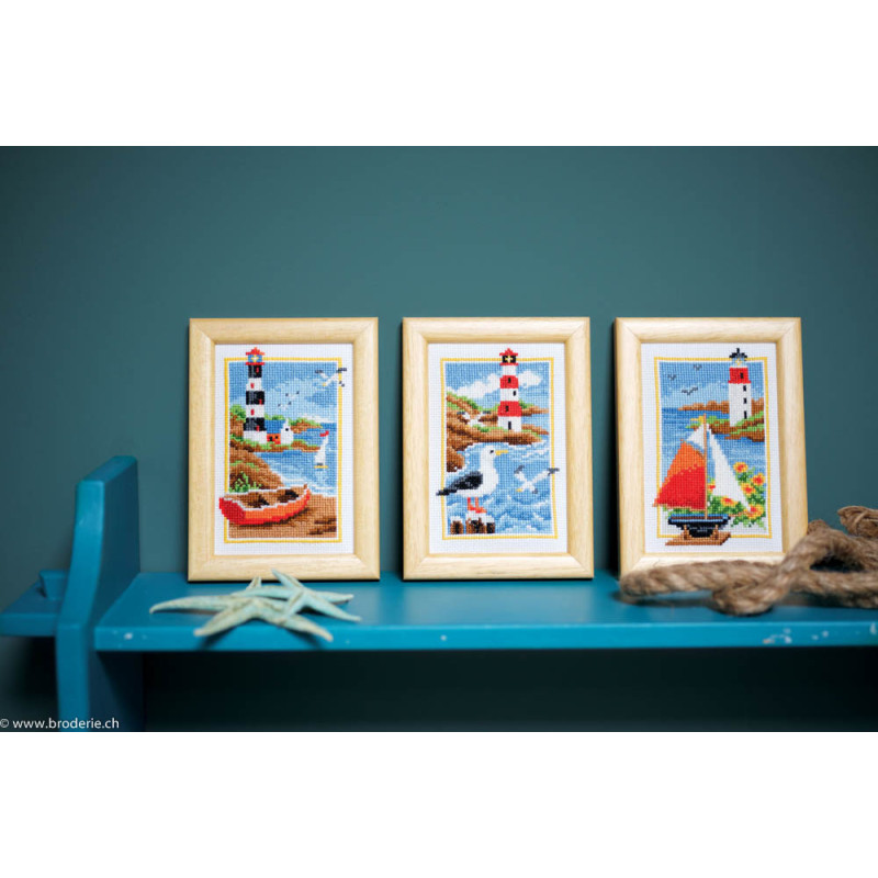 L'article 'Vervaco, kit 3 tableaux bord de mer (PN0158159)' fait partie de notre assortiment depuis le 19 mai 2018. Vervaco est un fabricant belge de kits au point de croix, au point noué, aux points comptés, et propose aussi de sympathiques kits pour les enfants. Ils sont de réalisation relativement faciles : pas de quart de point, dessins et diagrammes très clairs, beaucoup de thèmes abordés (paysage , fleurs , mariage,et particulièrement kits de naissances, toises et Disney).