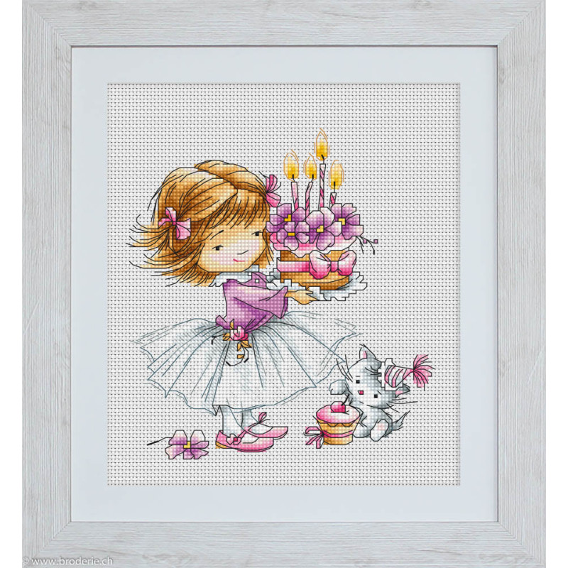 L'article 'Luca-S, kit Girl with a Kitten and a Cake (LUCAB1054)' fait partie de notre assortiment depuis le 29 septembre 2018. Luca-S est une gamme de points de croix comptés qui nous vient de Moldavie. Il y a beaucoup de modèles de personnages, paysages, nature morte, ainsi que de sympathiques kits pour Noël, des sacs à confectionner, des carttes postales à broder. Pour beaucoup de modèle vous pouvez aussi avoir le kit en canevas 25ct, pour des demi-points à compter (10/cm), ce qui fait la broderie bien plus petite et fine dans la rubrique Kits - Luca-S (P). Les kits sont fournis principalement sur de la trame aïda 6.4 points/cm ou 7 points/cm, ou de l'étamine de Zweigart, les coussins avec de l'étamine 8 fils ou 10 fils/cm. Les fils sont de la maison Anchor.