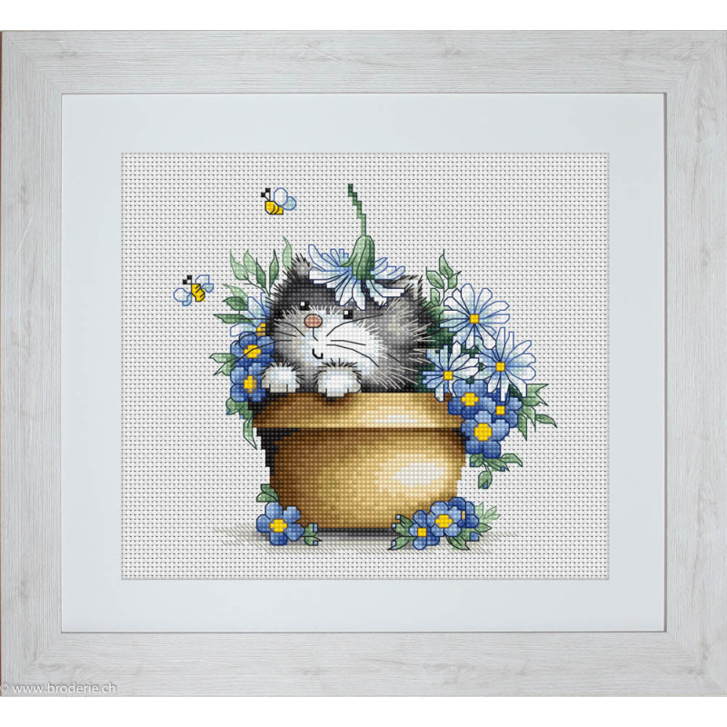 L'article 'Luca-S, kitten in flowers (LUCAB1048)' fait partie de notre assortiment depuis le 29 septembre 2018. Luca-S est une gamme de points de croix comptés qui nous vient de Moldavie. Il y a beaucoup de modèles de personnages, paysages, nature morte, ainsi que de sympathiques kits pour Noël, des sacs à confectionner, des carttes postales à broder. Pour beaucoup de modèle vous pouvez aussi avoir le kit en canevas 25ct, pour des demi-points à compter (10/cm), ce qui fait la broderie bien plus petite et fine dans la rubrique Kits - Luca-S (P). Les kits sont fournis principalement sur de la trame aïda 6.4 points/cm ou 7 points/cm, ou de l'étamine de Zweigart, les coussins avec de l'étamine 8 fils ou 10 fils/cm. Les fils sont de la maison Anchor.