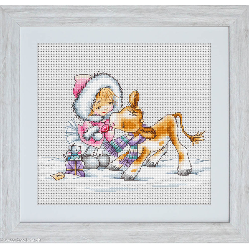 L'article 'Luca-S, kit Girl with a Calf (LUCAB1058)' fait partie de notre assortiment depuis le 29 septembre 2018. Luca-S est une gamme de points de croix comptés qui nous vient de Moldavie. Il y a beaucoup de modèles de personnages, paysages, nature morte, ainsi que de sympathiques kits pour Noël, des sacs à confectionner, des carttes postales à broder. Pour beaucoup de modèle vous pouvez aussi avoir le kit en canevas 25ct, pour des demi-points à compter (10/cm), ce qui fait la broderie bien plus petite et fine dans la rubrique Kits - Luca-S (P). Les kits sont fournis principalement sur de la trame aïda 6.4 points/cm ou 7 points/cm, ou de l'étamine de Zweigart, les coussins avec de l'étamine 8 fils ou 10 fils/cm. Les fils sont de la maison Anchor.