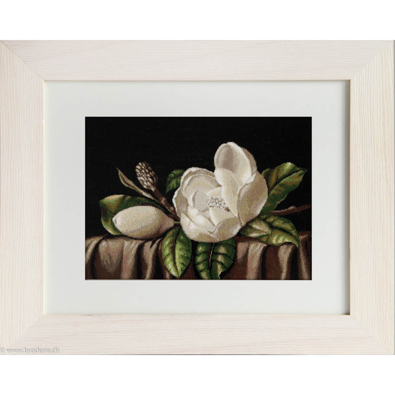 L'article 'Luca-S, kit canevas petits points Magnolia (LUCAG484)' fait partie de notre assortiment depuis le 25 août 2018. Dans cette rubrique vous trouvez les canevas 25 ct à compter de la maison moldave Luca-S (la trame correspond à 10 points/cm). Le point de broderie est le demi point comme le Gobelin, mais à compter sur un canevas vierge. Presque tous ces motifs se trouvent aussi en point de croix comptés, avec une trame de 6.4 ou 7 points/cm avec la référence B devant le chiffre, ce qui donne un résultat plus grand. Les fils ou laines sont de la maison Anchor.