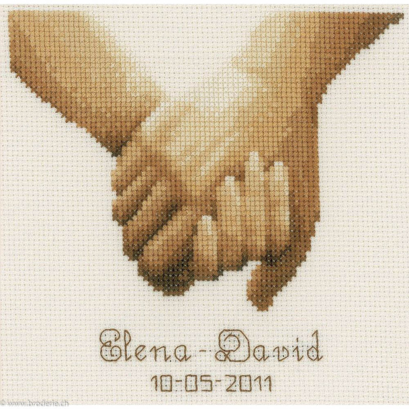 L'article 'Vervaco, kit Main dans la main (PN0012167)' fait partie de notre assortiment depuis le 22 juillet 2019. Vervaco est un fabricant belge de kits au point de croix, au point noué, aux points comptés, et propose aussi de sympathiques kits pour les enfants. Ils sont de réalisation relativement faciles : pas de quart de point, dessins et diagrammes très clairs, beaucoup de thèmes abordés (paysage , fleurs , mariage,et particulièrement kits de naissances, toises et Disney).