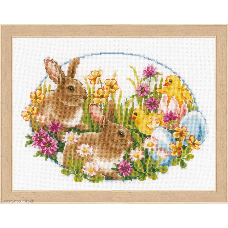 L'article 'Vervaco, kit Lapins et poussins (PN0149534)' fait partie de notre assortiment depuis le 12 avril 2019. Vervaco est un fabricant belge de kits au point de croix, au point noué, aux points comptés, et propose aussi de sympathiques kits pour les enfants. Ils sont de réalisation relativement faciles : pas de quart de point, dessins et diagrammes très clairs, beaucoup de thèmes abordés (paysage , fleurs , mariage,et particulièrement kits de naissances, toises et Disney).