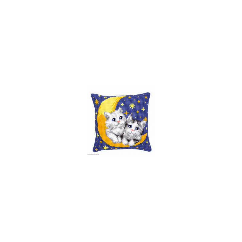 L'article 'Vervaco, kit coussin Chatons sur la lune (PN0008678)' fait partie de notre assortiment depuis le 18 juillet 2019. Vervaco est un fabricant belge de kits au point de croix, au point noué, aux points comptés, et propose aussi de sympathiques kits pour les enfants. Ils sont de réalisation relativement faciles : pas de quart de point, dessins et diagrammes très clairs, beaucoup de thèmes abordés (paysage , fleurs , mariage,et particulièrement kits de naissances, toises et Disney).