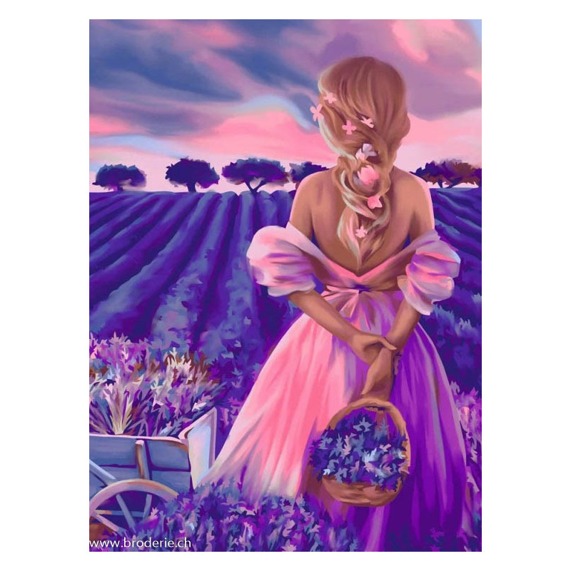 ArtCity, kit diamant Lavender paradise (art. ACVA027). Dimensions: 30 x 40 cm. Kit Diamant comprenant la toile adhésive imprimée à recouvrir de strass, les sachets de strass 'diamants' ronds triés par couleurs, un stylet et sa cire, un réceptacle et les explications.La toile est déjà tendue sur cadre et est entièrement à recouvrir de strass.ATTENTION, ce n'est pas une broderie, pas de fil ni d'aiguille, mais une mosaïque.