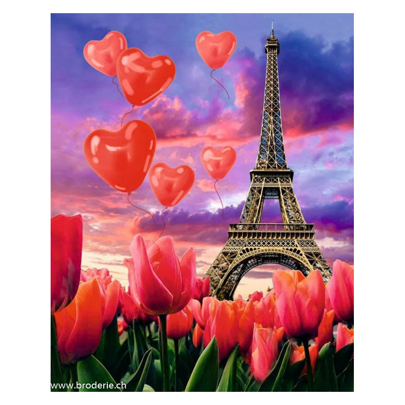 ArtCity, kit diamant Love is in the air (art. ACDP012). Dimensions: 40 x 50 cm. Kit Diamant comprenant la toile adhésive imprimée à recouvrir de strass, les sachets de strass 'diamants' ronds triés par couleurs, un stylet et sa cire, un réceptacle et les explications.La toile est déjà tendue sur cadre et est entièrement à recouvrir de strass.ATTENTION, ce n'est pas une broderie, pas de fil ni d'aiguille, mais une mosaïque.