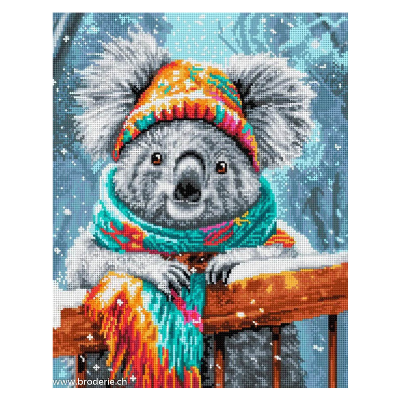 ArtCity, kit diamant Fancy koala (art. ACVA814). Dimensions: 30 x 40 cm. Kit Diamant comprenant la toile adhésive imprimée à recouvrir de strass, les sachets de strass 'diamants' ronds triés par couleurs, un stylet et sa cire, un réceptacle et les explications.La toile est déjà tendue sur cadre et est entièrement à recouvrir de strass.ATTENTION, ce n'est pas une broderie, pas de fil ni d'aiguille, mais une mosaïque.