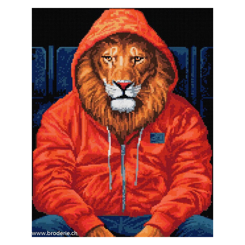 ArtCity, kit diamant King of beasts (art. ACVA818). Dimensions: 30 x 40 cm. Kit Diamant comprenant la toile adhésive imprimée à recouvrir de strass, les sachets de strass 'diamants' ronds triés par couleurs, un stylet et sa cire, un réceptacle et les explications.La toile est déjà tendue sur cadre et est entièrement à recouvrir de strass.ATTENTION, ce n'est pas une broderie, pas de fil ni d'aiguille, mais une mosaïque.