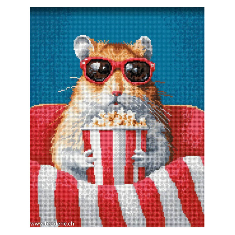 ArtCity, kit diamant Movie Time (art. ACVA828). Dimensions: 30 x 40 cm. Kit Diamant comprenant la toile adhésive imprimée à recouvrir de strass, les sachets de strass 'diamants' ronds triés par couleurs, un stylet et sa cire, un réceptacle et les explications.La toile est déjà tendue sur cadre et est entièrement à recouvrir de strass.ATTENTION, ce n'est pas une broderie, pas de fil ni d'aiguille, mais une mosaïque.