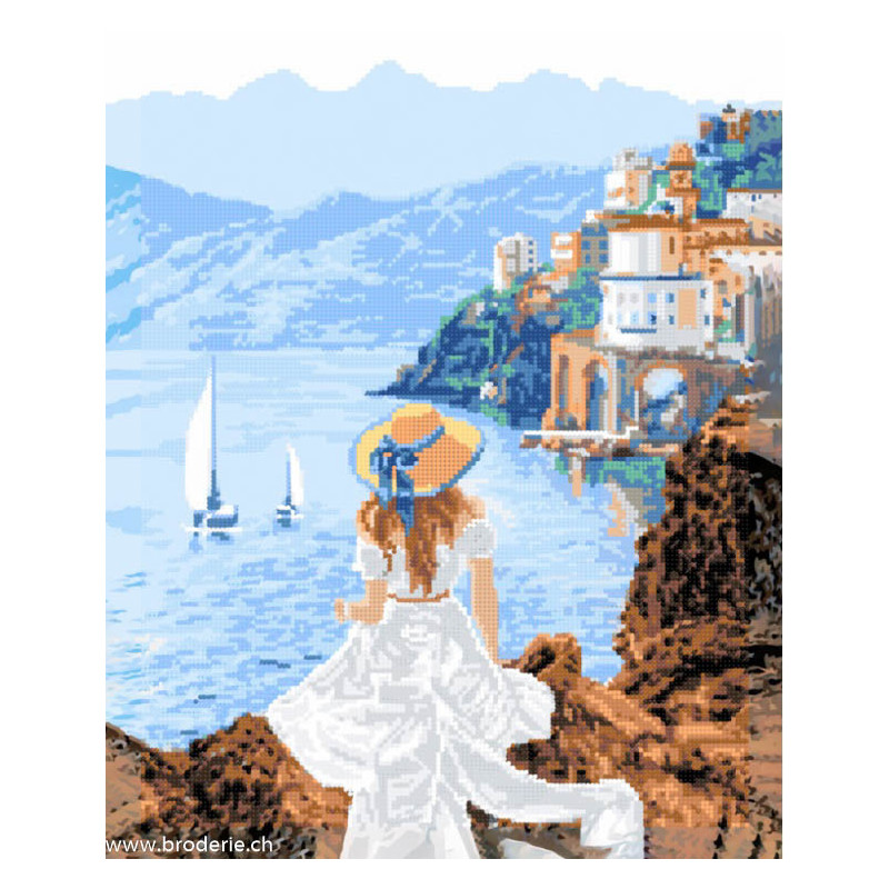 ArtCity, kit diamant Beautiful View (art. ACDP400). Dimensions: 40 x 50 cm. Kit Diamant comprenant la toile adhésive imprimée à recouvrir de strass, les sachets de strass 'diamants' ronds triés par couleurs, un stylet et sa cire, un réceptacle et les explications.La toile est déjà tendue sur cadre et est entièrement à recouvrir de strass.ATTENTION, ce n'est pas une broderie, pas de fil ni d'aiguille, mais une mosaïque.