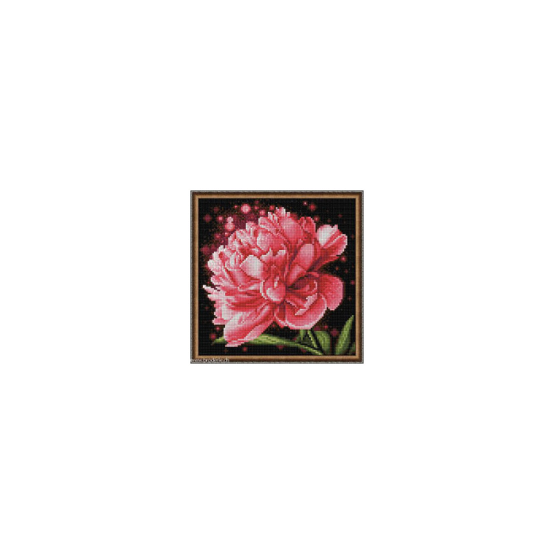 Artibalta, kit diamant Peonies (art. AZ-1784). Dimensions: 25 x 25 cm. Kit comprenant la toile adhésive, les strass carrés emballés dans des sachets individuels et numérotés aux références des coloris de DMC, une pince, un stylo et sa colle, 2 réceptables et les explications.Toute la surface du tableau est à recouvrir de strass. ATTENTION: ce n'est pas une broderie, il n'y a ni fil ni aiguille, mais un collage comme une mosaïque.