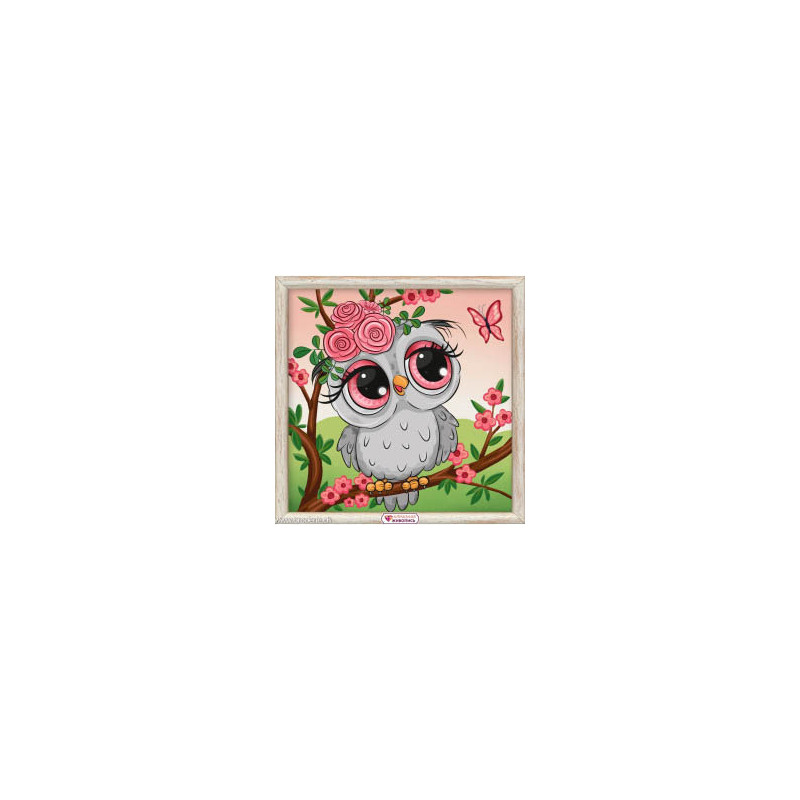 Artibalta, kit diamant Owl in flowers (art. AM-1945). Dimensions: 20 x 20 cm. Kit complet de Broderie Diamant comprenant la toile adhésive imprimée à recouvrir de strass, les sachets de strass 'diamants' triés par couleurs, un stylet et sa cire, un réceptacle et les explications. La totalité de la surface est à recouvrir. ATTENTION, ce n'est pas une broderie, pas de fil ni d'aiguille, mais une mosaïque.