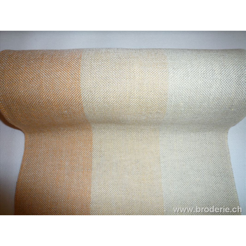 Vaupel, bande à broder 20cm trois teintes - chiné (art. 1025-2002). coloris jaune orange correspondants DMC 3855 et 3856, petite galon de lin de 2.5cm assorti sous référence 226-025. Prix pour 10 cm, minimum à commander: 50 cm (indiquez 5 comme quantité pour 50 cm, 6 pour 60 cm, etc...).
