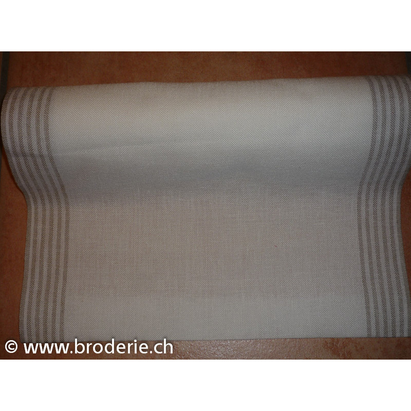 Vaupel, bande à broder Lin 34cm écru bordure lignes coloris naturel (art. 3050-900901). Largeur: 34 cm. Lin 11 fils/cm. Prix pour 10 cm, minimum à commander: 50 cm (indiquez 5 comme quantité pour 50 cm, 6 pour 60 cm, etc...).