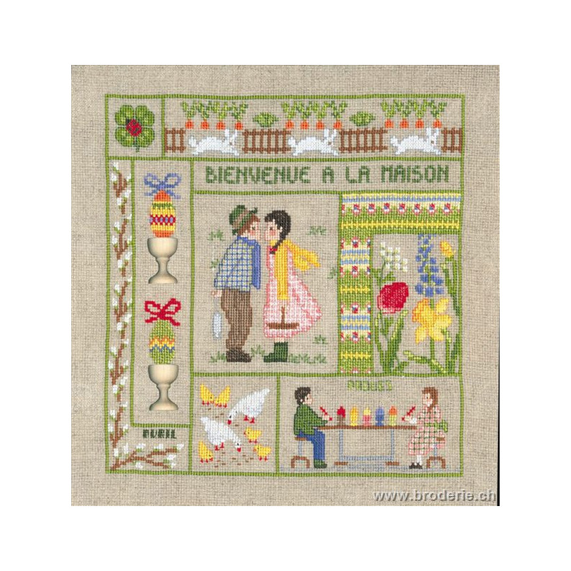 L'article 'Bonheur des Dames, kit bienvenue Avril (BD2653)' fait partie de notre assortiment depuis le 22 mars 2006. La gamme française Bonheur des Dames est très complète et propose de très jolis modèles de kits de point-de croix comptés. Sont très représentés les thèmes de la mer, des mois et saisons,la cuisine et les enfants. Pour l'instant nous avons mis sur le site les kits, mais le Bonheur des Dames propose aussi des accessoires tels que coeur en lin, bottes de Noël en feutrine prêts à être broder, modèles de points de croix. Vous pouvez nous contacter pour ces articles que nous tenons aussi en partie en stock. Fiche technique: kits très bien présentés, souvent avec les accessoires fournis. Mais attention, les kits peuvent avoir différents points et parfois des petits-points (tout le kit -ex BD3646 - ou une partie - ex BD1135), merci d'y prendre garde lors de votre commande.