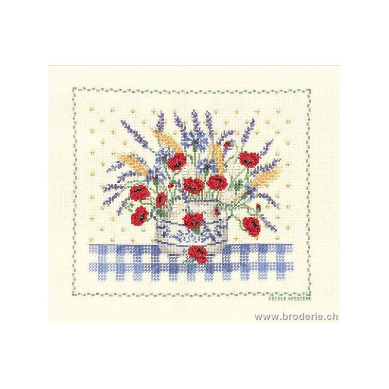 L'article 'Bonheur des Dames, kit coquelicots (BD1032)' fait partie de notre assortiment depuis le 9 juillet 2008. La gamme française Bonheur des Dames est très complète et propose de très jolis modèles de kits de point-de croix comptés. Sont très représentés les thèmes de la mer, des mois et saisons,la cuisine et les enfants. Pour l'instant nous avons mis sur le site les kits, mais le Bonheur des Dames propose aussi des accessoires tels que coeur en lin, bottes de Noël en feutrine prêts à être broder, modèles de points de croix. Vous pouvez nous contacter pour ces articles que nous tenons aussi en partie en stock. Fiche technique: kits très bien présentés, souvent avec les accessoires fournis. Mais attention, les kits peuvent avoir différents points et parfois des petits-points (tout le kit -ex BD3646 - ou une partie - ex BD1135), merci d'y prendre garde lors de votre commande.