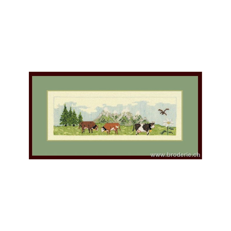 L'article 'Bonheur des Dames, kit vaches a la montagne (BD1037)' fait partie de notre assortiment depuis le 9 juillet 2008. La gamme française Bonheur des Dames est très complète et propose de très jolis modèles de kits de point-de croix comptés. Sont très représentés les thèmes de la mer, des mois et saisons,la cuisine et les enfants. Pour l'instant nous avons mis sur le site les kits, mais le Bonheur des Dames propose aussi des accessoires tels que coeur en lin, bottes de Noël en feutrine prêts à être broder, modèles de points de croix. Vous pouvez nous contacter pour ces articles que nous tenons aussi en partie en stock. Fiche technique: kits très bien présentés, souvent avec les accessoires fournis. Mais attention, les kits peuvent avoir différents points et parfois des petits-points (tout le kit -ex BD3646 - ou une partie - ex BD1135), merci d'y prendre garde lors de votre commande.