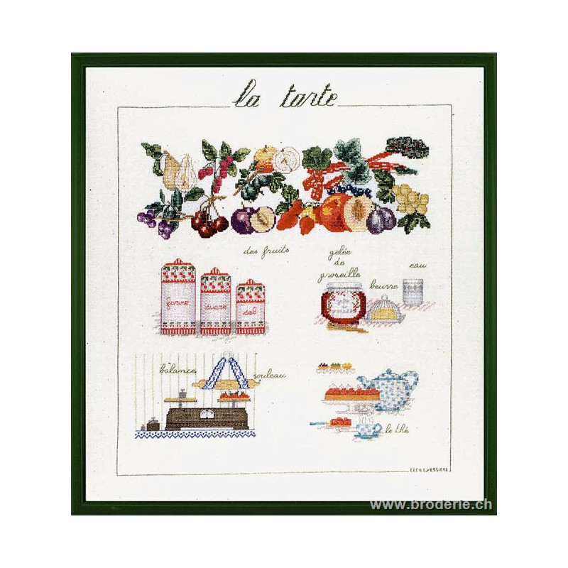 L'article 'Bonheur des Dames, kit la tarte (BD1183)' fait partie de notre assortiment depuis le 9 juillet 2008. La gamme française Bonheur des Dames est très complète et propose de très jolis modèles de kits de point-de croix comptés. Sont très représentés les thèmes de la mer, des mois et saisons,la cuisine et les enfants. Pour l'instant nous avons mis sur le site les kits, mais le Bonheur des Dames propose aussi des accessoires tels que coeur en lin, bottes de Noël en feutrine prêts à être broder, modèles de points de croix. Vous pouvez nous contacter pour ces articles que nous tenons aussi en partie en stock. Fiche technique: kits très bien présentés, souvent avec les accessoires fournis. Mais attention, les kits peuvent avoir différents points et parfois des petits-points (tout le kit -ex BD3646 - ou une partie - ex BD1135), merci d'y prendre garde lors de votre commande.