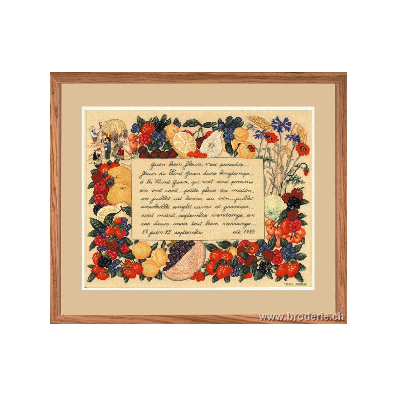 L'article 'Bonheur des Dames, kit proverbes d’été (BD1194)' fait partie de notre assortiment depuis le 9 juillet 2008. La gamme française Bonheur des Dames est très complète et propose de très jolis modèles de kits de point-de croix comptés. Sont très représentés les thèmes de la mer, des mois et saisons,la cuisine et les enfants. Pour l'instant nous avons mis sur le site les kits, mais le Bonheur des Dames propose aussi des accessoires tels que coeur en lin, bottes de Noël en feutrine prêts à être broder, modèles de points de croix. Vous pouvez nous contacter pour ces articles que nous tenons aussi en partie en stock. Fiche technique: kits très bien présentés, souvent avec les accessoires fournis. Mais attention, les kits peuvent avoir différents points et parfois des petits-points (tout le kit -ex BD3646 - ou une partie - ex BD1135), merci d'y prendre garde lors de votre commande.
