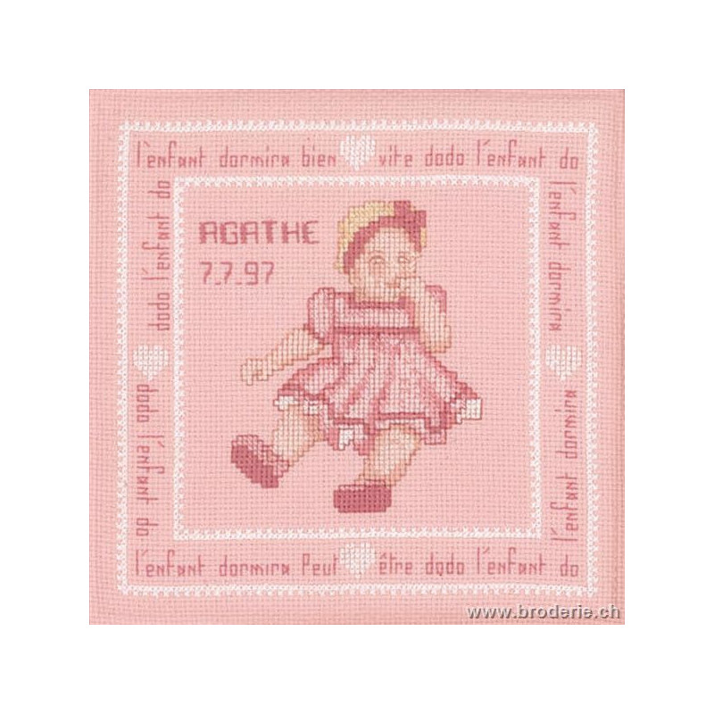 L'article 'Bonheur des Dames, kit naissance Agathe (BD1820)' fait partie de notre assortiment depuis le 9 juillet 2008. La gamme française Bonheur des Dames est très complète et propose de très jolis modèles de kits de point-de croix comptés. Sont très représentés les thèmes de la mer, des mois et saisons,la cuisine et les enfants. Pour l'instant nous avons mis sur le site les kits, mais le Bonheur des Dames propose aussi des accessoires tels que coeur en lin, bottes de Noël en feutrine prêts à être broder, modèles de points de croix. Vous pouvez nous contacter pour ces articles que nous tenons aussi en partie en stock. Fiche technique: kits très bien présentés, souvent avec les accessoires fournis. Mais attention, les kits peuvent avoir différents points et parfois des petits-points (tout le kit -ex BD3646 - ou une partie - ex BD1135), merci d'y prendre garde lors de votre commande.