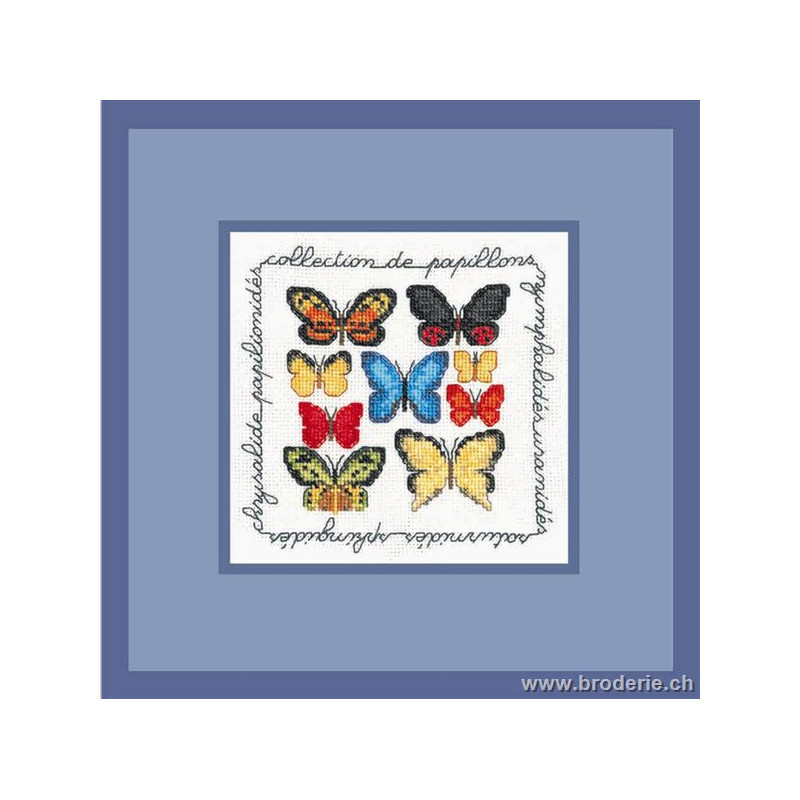 L'article 'Bonheur des Dames, kit collection de papillons (BD2249)' fait partie de notre assortiment depuis le 9 juillet 2008. La gamme française Bonheur des Dames est très complète et propose de très jolis modèles de kits de point-de croix comptés. Sont très représentés les thèmes de la mer, des mois et saisons,la cuisine et les enfants. Pour l'instant nous avons mis sur le site les kits, mais le Bonheur des Dames propose aussi des accessoires tels que coeur en lin, bottes de Noël en feutrine prêts à être broder, modèles de points de croix. Vous pouvez nous contacter pour ces articles que nous tenons aussi en partie en stock. Fiche technique: kits très bien présentés, souvent avec les accessoires fournis. Mais attention, les kits peuvent avoir différents points et parfois des petits-points (tout le kit -ex BD3646 - ou une partie - ex BD1135), merci d'y prendre garde lors de votre commande.