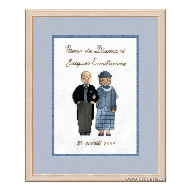 L'article 'Bonheur des Dames, kit noces de diamant (BD2319)' fait partie de notre assortiment depuis le 9 juillet 2008. La gamme française Bonheur des Dames est très complète et propose de très jolis modèles de kits de point-de croix comptés. Sont très représentés les thèmes de la mer, des mois et saisons,la cuisine et les enfants. Pour l'instant nous avons mis sur le site les kits, mais le Bonheur des Dames propose aussi des accessoires tels que coeur en lin, bottes de Noël en feutrine prêts à être broder, modèles de points de croix. Vous pouvez nous contacter pour ces articles que nous tenons aussi en partie en stock. Fiche technique: kits très bien présentés, souvent avec les accessoires fournis. Mais attention, les kits peuvent avoir différents points et parfois des petits-points (tout le kit -ex BD3646 - ou une partie - ex BD1135), merci d'y prendre garde lors de votre commande.