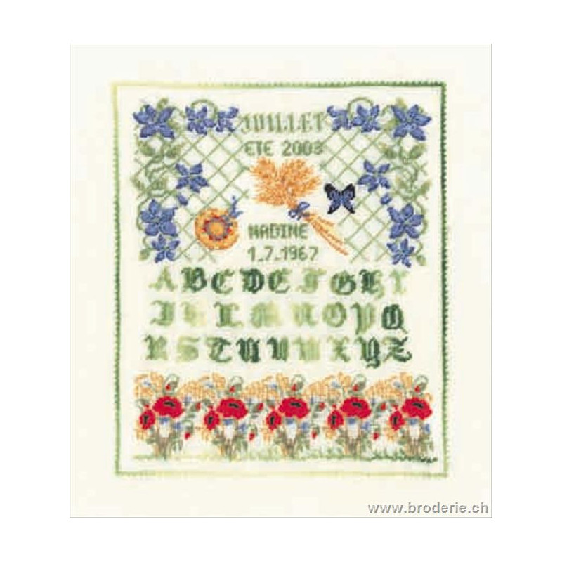 L'article 'Bonheur des Dames, kit miniature juillet (BD3631)' fait partie de notre assortiment depuis le 9 juillet 2008. La gamme française Bonheur des Dames est très complète et propose de très jolis modèles de kits de point-de croix comptés. Sont très représentés les thèmes de la mer, des mois et saisons,la cuisine et les enfants. Pour l'instant nous avons mis sur le site les kits, mais le Bonheur des Dames propose aussi des accessoires tels que coeur en lin, bottes de Noël en feutrine prêts à être broder, modèles de points de croix. Vous pouvez nous contacter pour ces articles que nous tenons aussi en partie en stock. Fiche technique: kits très bien présentés, souvent avec les accessoires fournis. Mais attention, les kits peuvent avoir différents points et parfois des petits-points (tout le kit -ex BD3646 - ou une partie - ex BD1135), merci d'y prendre garde lors de votre commande.