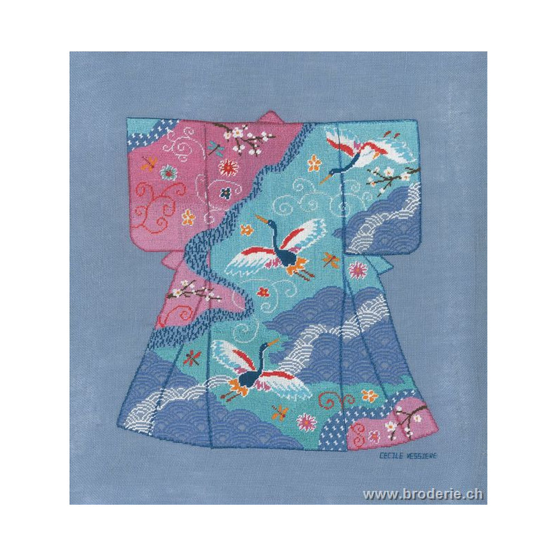 L'article 'Bonheur des Dames, kit kimono hérons (BD3648)' fait partie de notre assortiment depuis le 9 juillet 2008. La gamme française Bonheur des Dames est très complète et propose de très jolis modèles de kits de point-de croix comptés. Sont très représentés les thèmes de la mer, des mois et saisons,la cuisine et les enfants. Pour l'instant nous avons mis sur le site les kits, mais le Bonheur des Dames propose aussi des accessoires tels que coeur en lin, bottes de Noël en feutrine prêts à être broder, modèles de points de croix. Vous pouvez nous contacter pour ces articles que nous tenons aussi en partie en stock. Fiche technique: kits très bien présentés, souvent avec les accessoires fournis. Mais attention, les kits peuvent avoir différents points et parfois des petits-points (tout le kit -ex BD3646 - ou une partie - ex BD1135), merci d'y prendre garde lors de votre commande.