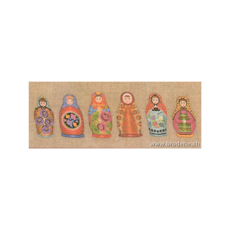 L'article 'Bonheur des Dames, kit poupées russes (BD3652)' fait partie de notre assortiment depuis le 20 novembre 2008. La gamme française Bonheur des Dames est très complète et propose de très jolis modèles de kits de point-de croix comptés. Sont très représentés les thèmes de la mer, des mois et saisons,la cuisine et les enfants. Pour l'instant nous avons mis sur le site les kits, mais le Bonheur des Dames propose aussi des accessoires tels que coeur en lin, bottes de Noël en feutrine prêts à être broder, modèles de points de croix. Vous pouvez nous contacter pour ces articles que nous tenons aussi en partie en stock. Fiche technique: kits très bien présentés, souvent avec les accessoires fournis. Mais attention, les kits peuvent avoir différents points et parfois des petits-points (tout le kit -ex BD3646 - ou une partie - ex BD1135), merci d'y prendre garde lors de votre commande.