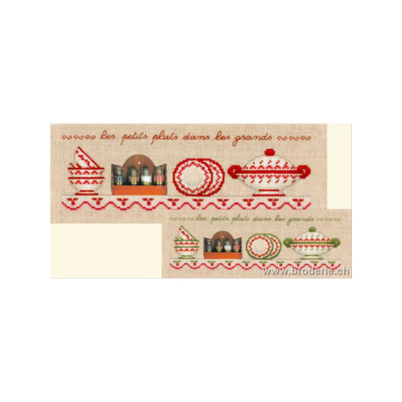 L'article 'Bonheur des Dames, kit les petits plats dans les grands (BD2666)' fait partie de notre assortiment depuis le 20 novembre 2008. La gamme française Bonheur des Dames est très complète et propose de très jolis modèles de kits de point-de croix comptés. Sont très représentés les thèmes de la mer, des mois et saisons,la cuisine et les enfants. Pour l'instant nous avons mis sur le site les kits, mais le Bonheur des Dames propose aussi des accessoires tels que coeur en lin, bottes de Noël en feutrine prêts à être broder, modèles de points de croix. Vous pouvez nous contacter pour ces articles que nous tenons aussi en partie en stock. Fiche technique: kits très bien présentés, souvent avec les accessoires fournis. Mais attention, les kits peuvent avoir différents points et parfois des petits-points (tout le kit -ex BD3646 - ou une partie - ex BD1135), merci d'y prendre garde lors de votre commande.