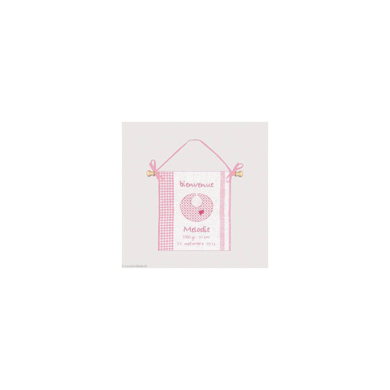 L'article 'Bonheur des Dames, kit Bienvenue bavoir rose (BD5096)' fait partie de notre assortiment depuis le 22 mars 2017. La gamme française Bonheur des Dames est très complète et propose de très jolis modèles de kits de point-de croix comptés. Sont très représentés les thèmes de la mer, des mois et saisons,la cuisine et les enfants. Pour l'instant nous avons mis sur le site les kits, mais le Bonheur des Dames propose aussi des accessoires tels que coeur en lin, bottes de Noël en feutrine prêts à être broder, modèles de points de croix. Vous pouvez nous contacter pour ces articles que nous tenons aussi en partie en stock. Fiche technique: kits très bien présentés, souvent avec les accessoires fournis. Mais attention, les kits peuvent avoir différents points et parfois des petits-points (tout le kit -ex BD3646 - ou une partie - ex BD1135), merci d'y prendre garde lors de votre commande.