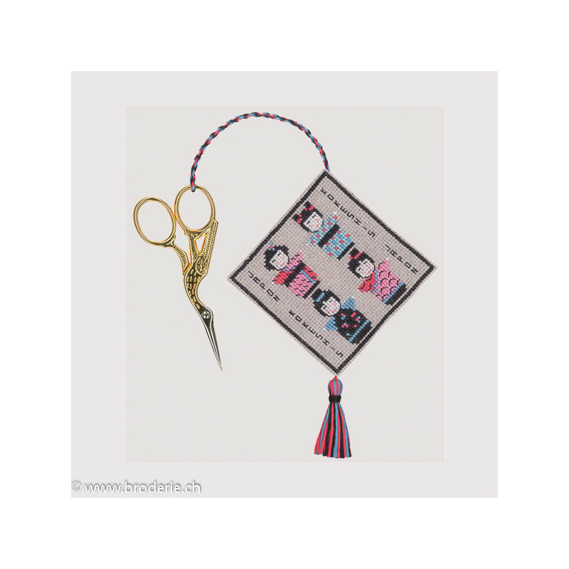 L'article 'Bonheur des Dames, kit porte-ciseaux Kokeshis (BD3359)' fait partie de notre assortiment depuis le 2 avril 2015. La gamme française Bonheur des Dames est très complète et propose de très jolis modèles de kits de point-de croix comptés. Sont très représentés les thèmes de la mer, des mois et saisons,la cuisine et les enfants. Pour l'instant nous avons mis sur le site les kits, mais le Bonheur des Dames propose aussi des accessoires tels que coeur en lin, bottes de Noël en feutrine prêts à être broder, modèles de points de croix. Vous pouvez nous contacter pour ces articles que nous tenons aussi en partie en stock. Fiche technique: kits très bien présentés, souvent avec les accessoires fournis. Mais attention, les kits peuvent avoir différents points et parfois des petits-points (tout le kit -ex BD3646 - ou une partie - ex BD1135), merci d'y prendre garde lors de votre commande.
