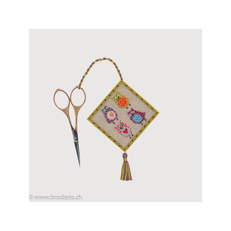 L'article 'Bonheur des Dames, kit porte-ciseaux chouettes (BD3358)' fait partie de notre assortiment depuis le 9 janvier 2017. La gamme française Bonheur des Dames est très complète et propose de très jolis modèles de kits de point-de croix comptés. Sont très représentés les thèmes de la mer, des mois et saisons,la cuisine et les enfants. Pour l'instant nous avons mis sur le site les kits, mais le Bonheur des Dames propose aussi des accessoires tels que coeur en lin, bottes de Noël en feutrine prêts à être broder, modèles de points de croix. Vous pouvez nous contacter pour ces articles que nous tenons aussi en partie en stock. Fiche technique: kits très bien présentés, souvent avec les accessoires fournis. Mais attention, les kits peuvent avoir différents points et parfois des petits-points (tout le kit -ex BD3646 - ou une partie - ex BD1135), merci d'y prendre garde lors de votre commande.
