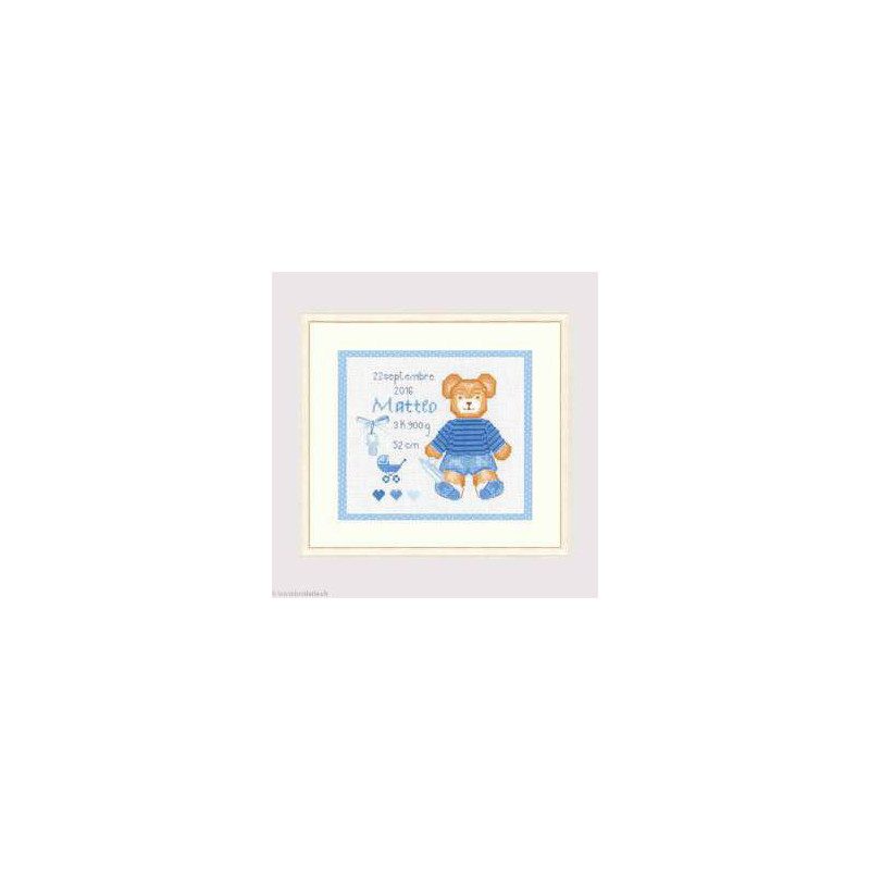 L'article 'Bonheur des Dames, kit naisance Matteo (BD2633)' fait partie de notre assortiment depuis le 22 mars 2017. La gamme française Bonheur des Dames est très complète et propose de très jolis modèles de kits de point-de croix comptés. Sont très représentés les thèmes de la mer, des mois et saisons,la cuisine et les enfants. Pour l'instant nous avons mis sur le site les kits, mais le Bonheur des Dames propose aussi des accessoires tels que coeur en lin, bottes de Noël en feutrine prêts à être broder, modèles de points de croix. Vous pouvez nous contacter pour ces articles que nous tenons aussi en partie en stock. Fiche technique: kits très bien présentés, souvent avec les accessoires fournis. Mais attention, les kits peuvent avoir différents points et parfois des petits-points (tout le kit -ex BD3646 - ou une partie - ex BD1135), merci d'y prendre garde lors de votre commande.