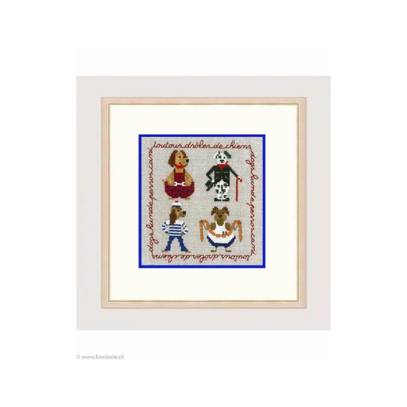 L'article 'Bonheur des Dames, kit Drôles de Chiens (BD2277)' fait partie de notre assortiment depuis le 1 avril 2019. La gamme française Bonheur des Dames est très complète et propose de très jolis modèles de kits de point-de croix comptés. Sont très représentés les thèmes de la mer, des mois et saisons,la cuisine et les enfants. Pour l'instant nous avons mis sur le site les kits, mais le Bonheur des Dames propose aussi des accessoires tels que coeur en lin, bottes de Noël en feutrine prêts à être broder, modèles de points de croix. Vous pouvez nous contacter pour ces articles que nous tenons aussi en partie en stock. Fiche technique: kits très bien présentés, souvent avec les accessoires fournis. Mais attention, les kits peuvent avoir différents points et parfois des petits-points (tout le kit -ex BD3646 - ou une partie - ex BD1135), merci d'y prendre garde lors de votre commande.