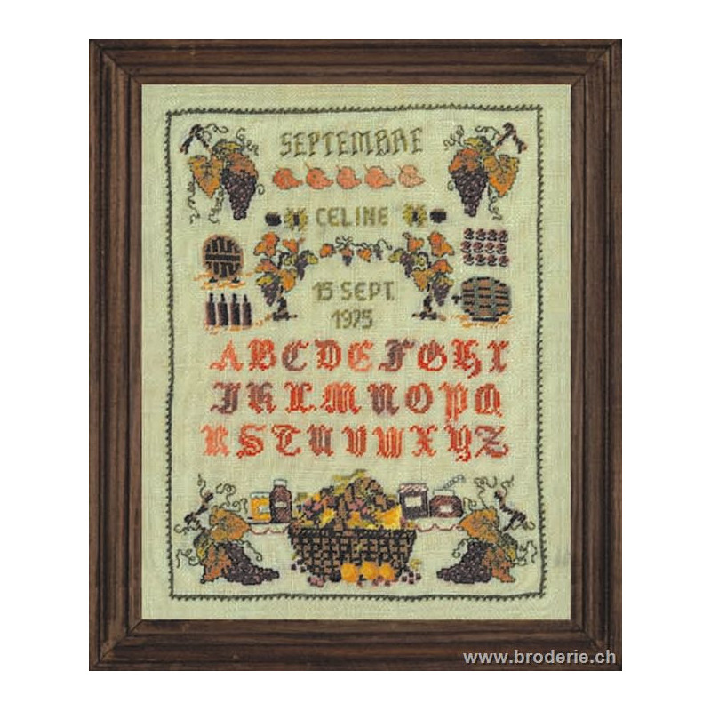 L'article 'Bonheur des Dames, kit miniature septembre (BD3608)' fait partie de notre assortiment depuis le 18 septembre 2003. La gamme française Bonheur des Dames est très complète et propose de très jolis modèles de kits de point-de croix comptés. Sont très représentés les thèmes de la mer, des mois et saisons,la cuisine et les enfants. Pour l'instant nous avons mis sur le site les kits, mais le Bonheur des Dames propose aussi des accessoires tels que coeur en lin, bottes de Noël en feutrine prêts à être broder, modèles de points de croix. Vous pouvez nous contacter pour ces articles que nous tenons aussi en partie en stock. Fiche technique: kits très bien présentés, souvent avec les accessoires fournis. Mais attention, les kits peuvent avoir différents points et parfois des petits-points (tout le kit -ex BD3646 - ou une partie - ex BD1135), merci d'y prendre garde lors de votre commande.