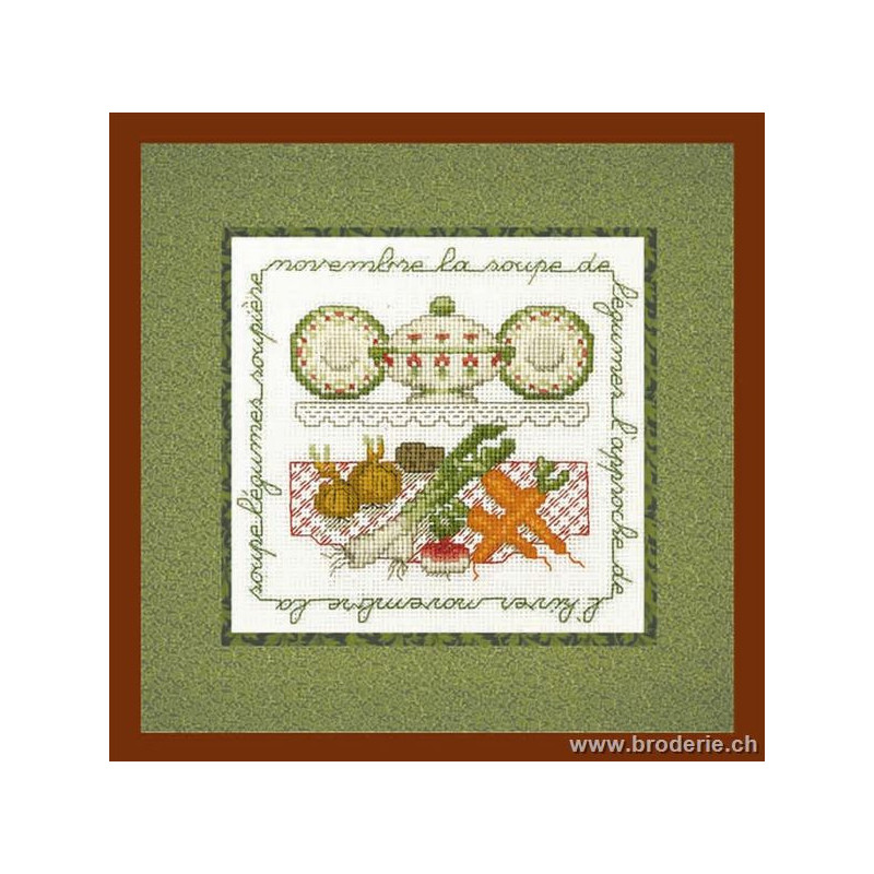 L'article 'Bonheur des Dames, kit la soupe de légumes (BD2237)' fait partie de notre assortiment depuis le 18 septembre 2003. La gamme française Bonheur des Dames est très complète et propose de très jolis modèles de kits de point-de croix comptés. Sont très représentés les thèmes de la mer, des mois et saisons,la cuisine et les enfants. Pour l'instant nous avons mis sur le site les kits, mais le Bonheur des Dames propose aussi des accessoires tels que coeur en lin, bottes de Noël en feutrine prêts à être broder, modèles de points de croix. Vous pouvez nous contacter pour ces articles que nous tenons aussi en partie en stock. Fiche technique: kits très bien présentés, souvent avec les accessoires fournis. Mais attention, les kits peuvent avoir différents points et parfois des petits-points (tout le kit -ex BD3646 - ou une partie - ex BD1135), merci d'y prendre garde lors de votre commande.