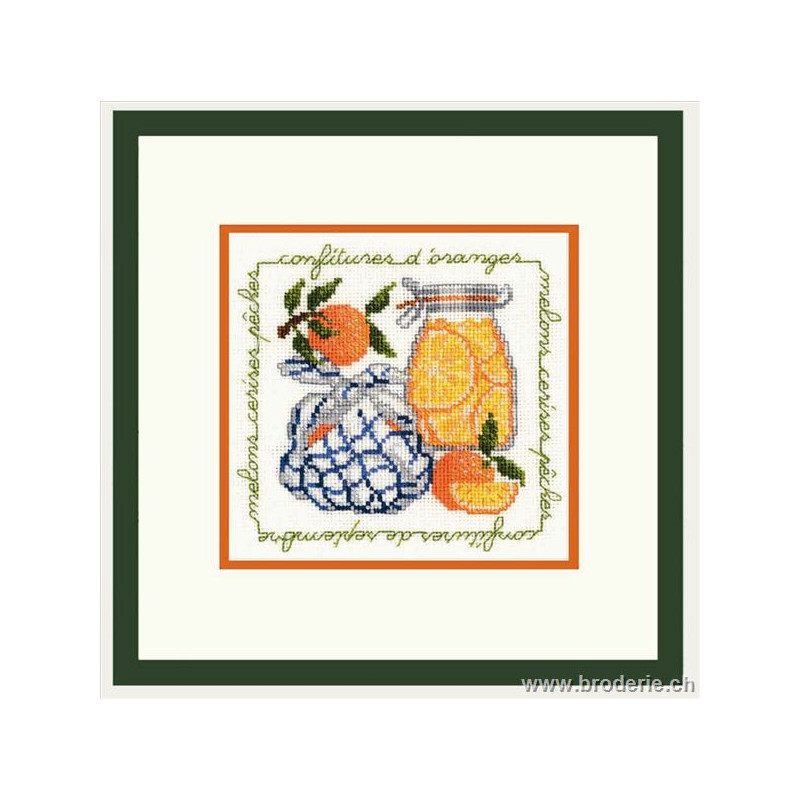 L'article 'Bonheur des Dames, kit confitures d’oranges (BD2251)' fait partie de notre assortiment depuis le 5 août 2004. La gamme française Bonheur des Dames est très complète et propose de très jolis modèles de kits de point-de croix comptés. Sont très représentés les thèmes de la mer, des mois et saisons,la cuisine et les enfants. Pour l'instant nous avons mis sur le site les kits, mais le Bonheur des Dames propose aussi des accessoires tels que coeur en lin, bottes de Noël en feutrine prêts à être broder, modèles de points de croix. Vous pouvez nous contacter pour ces articles que nous tenons aussi en partie en stock. Fiche technique: kits très bien présentés, souvent avec les accessoires fournis. Mais attention, les kits peuvent avoir différents points et parfois des petits-points (tout le kit -ex BD3646 - ou une partie - ex BD1135), merci d'y prendre garde lors de votre commande.